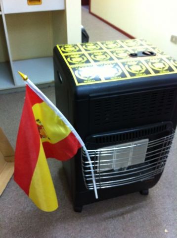 El viaje, y el reportaje se va acabando y de recuerdo, la estufa bien llena de pegatinas y con la banderica de España.