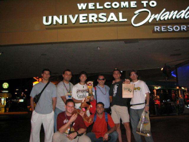 El equipo trás haber pasado un día en el parque de atracciones y comprar los regalos.