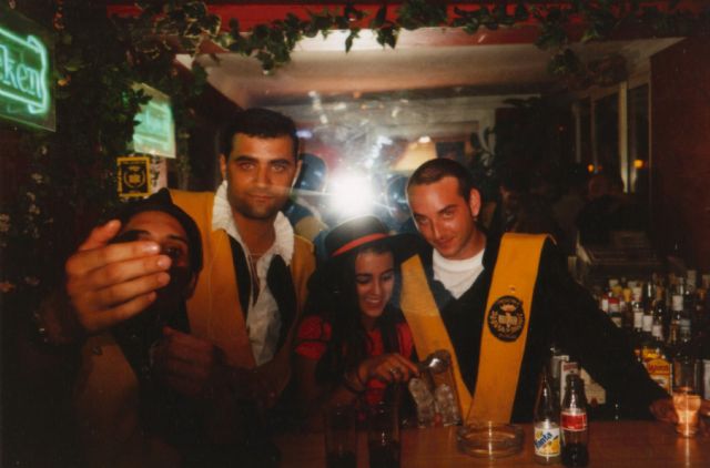 Invadiendo la barra de uno de los barres de Marbella. Observar, que ya por aquella época, poníamos la pegatina, "colonizábamos".