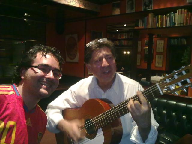 Raúl tocando una canción de su país, y Liante con la camiseta de la selección española de fútbol, CAMPEONES DEL MUNDO 2010, oleeeeeeee...