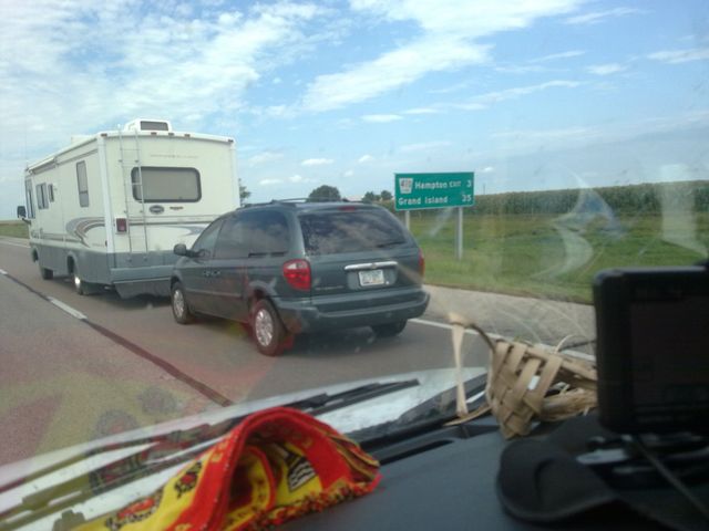 No es que el coche vaya muy pegado a la autocaravana, es que lo está remolcando. Esto lo vimos muchas veces durante el viaje.