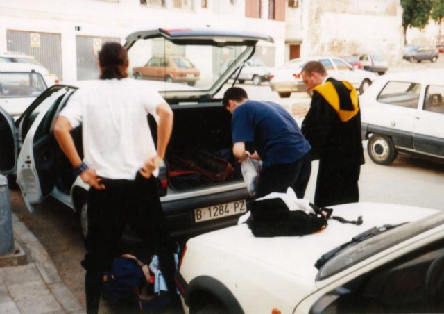 Nada más llegar a Almuñecar, en el primer sitio que aparcamos, nos cambiamos de Tuno y a parchear.