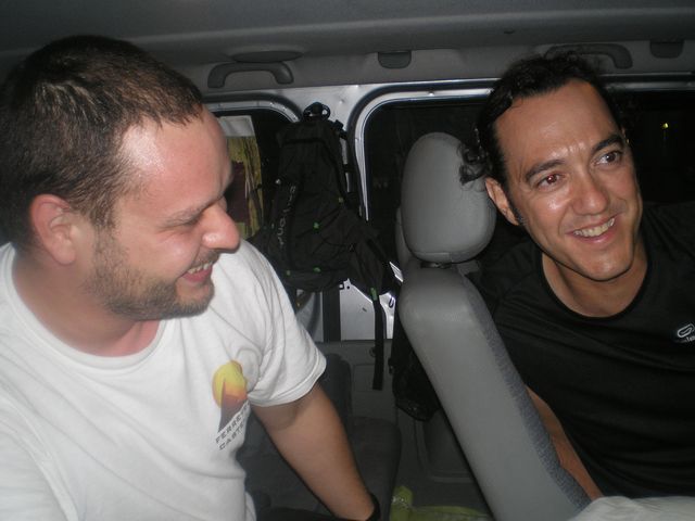Leandro no se cree que alguien quepa ahí abajo, jeje. Billy sonrie después de "salir vivo" del "zulo".