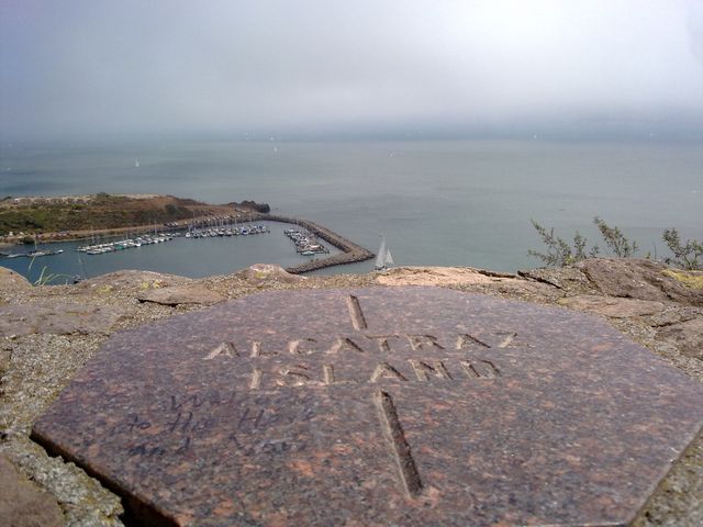 Y un cartel que indica donde está la no menos famosa Isla de Alcatraz. Una pena que con la niebla tampoco se vea.