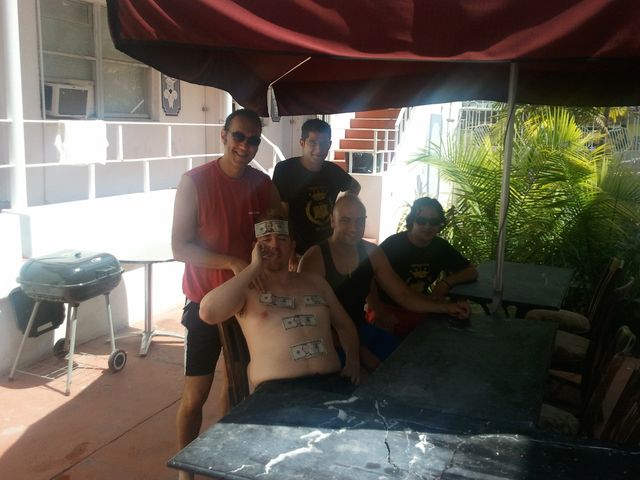 Después de pasarlas canutas parcheando a "2000ºF", jeje, el equipo se relaja contando el dinero antes de ir a la playa.