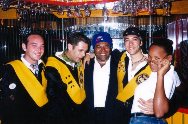 Con el portero del pub y una amiga, ya algo "perjudaicos".