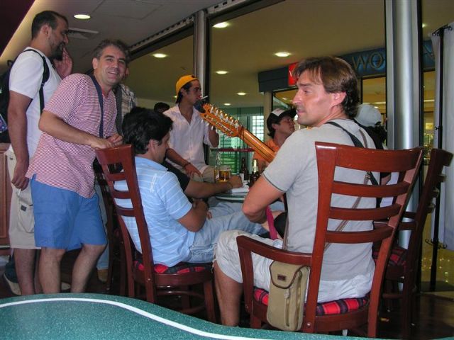 Esperando el avión a Ciudad de México, con nuestros amigos los Forzados de Cadereyta.