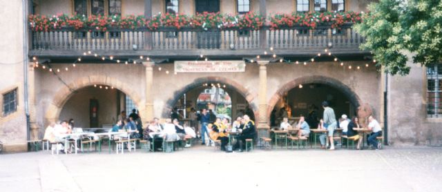 Evidentemente del momento Mutis rociado de gasóleo no hay foto, así que ponemos una tomando algo en Colmar antes de parchear.