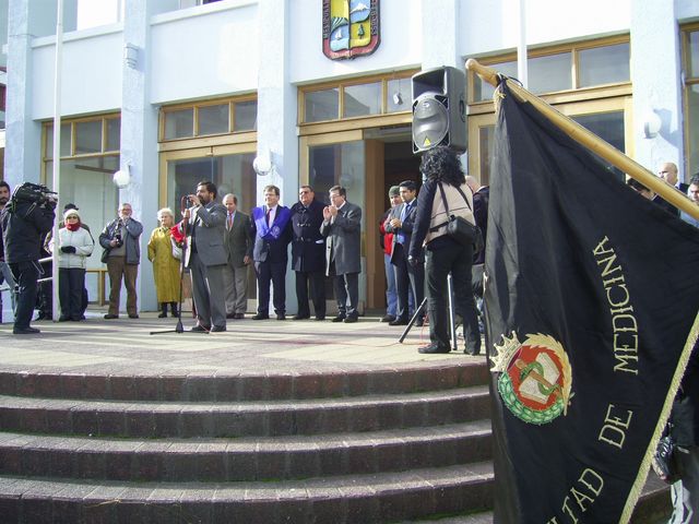 Donde como no, el Alcalde dió su discurso. Ya se ve al Rector con la Beca de su tuna.