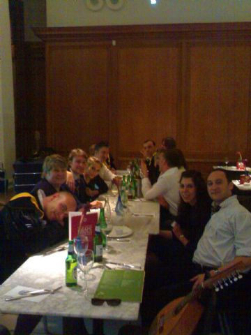 Nuestra última noche en Londres, cenando con los encargados de contratarnos.
