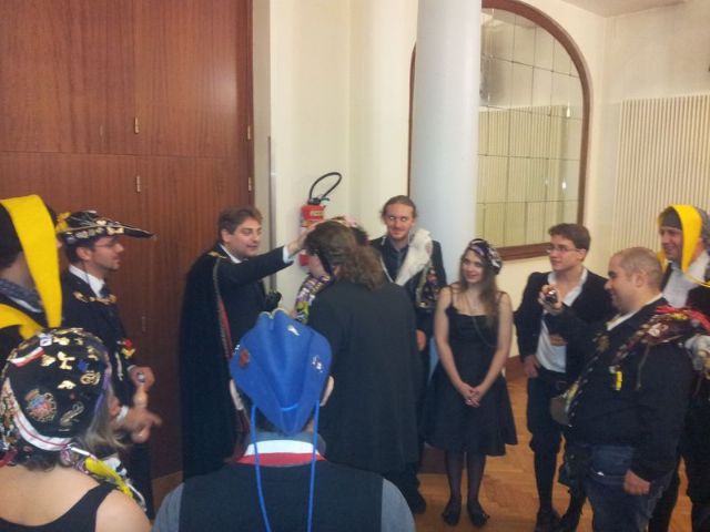 El grupo de Bolonia, haciendo hermano de honor a uno de Estrasburgo.