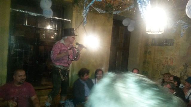 La última noche después de cerrar las carpas nos metimos en este antro. El que está subido no es un cliente, es el dueño, jajaja.