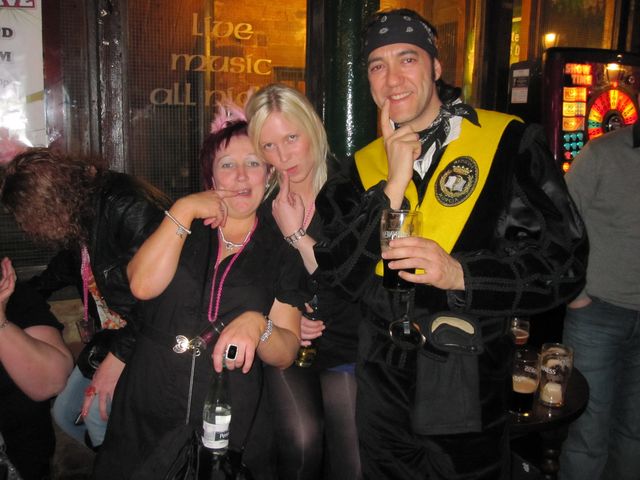 Enseñando el gesto típico de Manolo a unas que iban de despedida de soltera.