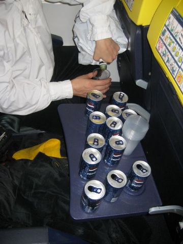 La azafata nos confiscó la botella, lo que no sabía es que teníamos 3 más, jajaja... 11 Pepsis más...