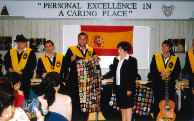 Quintos explicando que es la Tuna, y el significado de los escudos y las cintas de la capa.