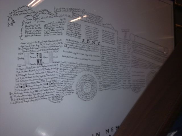 Esta foto es muy sentimental, es un camión de bomberos dibujado con los nombres de los bomberos fallecidos el 11-S.