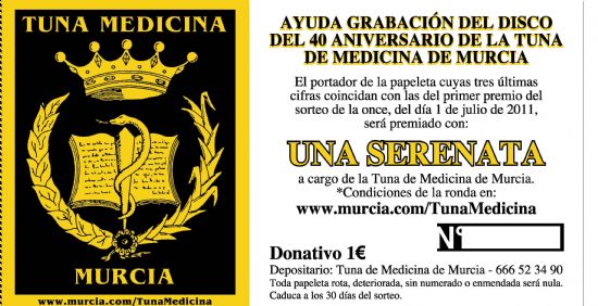 NÚMERO AGRACIADO EN EL SORTEO DEL 01-07-2011 CON UNA SERENATA A CARGO DE LA TUNA DE MEDICINA DE MURCIA