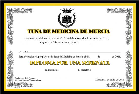 - Además de la Serenata, la persona agraciada será obsequiada con una copia de los últimos tres CDs grabados por la Tuna de Medicina de Murcia y un diploma acreditativo.