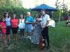 Aunque estamos muy a gusto, tenemos que seguir viaje para poder ver todas las ciudades que nos hemos propuesto, pero antes de irnos, gran barbacoa "BBC" de la "Tuna" Lazos de Amistad en casa de Jeannette y Mauricio en nuestro honor. Se reúnen los amigos de esta tuna y disfrutamos de un día inolvidable en su companía. !Ah! Incluso con representación teatral a cargo de Jeannette. Nos despedimos de todos, con !un hasta luego! y vamos a parchear en Toronto, tras lo que partimos con destino a Chicago. En la frontera nos "toca" el agente de aduanas más inepto de todo EE.UU. el cual nos confunde con un grupo profesional de música y nos "devuelve" a Canadá, para conseguir el visado P1, el cual lo necesitan y solo lo pueden conseguir artistas y deportistas profesionales de primer nivel. Tras nuestros inútiles intentos de explicarle lo que éramos, y tras ser avisados que ni intentemos pasar la frontera sin el P1, nos vemos obligados a dar media vuelta y volver otra vez a Canadá, a Newmarket donde nos vuelven a acoger con los brazos abiertos Jeannette y Mauricio.