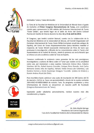 el gusto de invitarles al Primer Congreso Iberoamericano de Tunas, acto