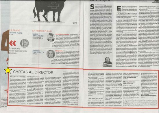 por su artículo en el diario La Verdad de Murcia de hoy viernes 2 de mayo de