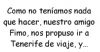 Este viaje fue visto y no visto, tanto por la duración, tres días, como por la organización ya que dijimos ?nos vamos?, pues si, ?si?, pues ale nos vamos y para Tenerife que nos fuimos D. Alex, D. Billy, D. Tamagochi y D. Azafrán.Esperamos que os guste el reportaje... Besicos a nuestros hermanos de la Tuna de Medicina de La Laguna.