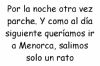 Viaje realizado del 30 de julio al 10 de agosto de 2009, por 4 osados miembros de la Tuna de Medicina de Murcia, con destino: Mallorca y Menorca. Este verano, como no podía ser menos, nos fuimos de viaje. Esta vez, el grupo estaba inédito debido a las numerosas bajas de los que viajen habitualmente, pero como no queríamos quedarnos sin viaje, se formó un grupo de circunstancia y pusimos rumbo a las Islas Baleares, algo cerquita, que tampoco está la cosa como para hacer el típico viaje de cruzar toda Europa Como el ano pasado, el equipo lo componían sólo tres veteranos y un novato, y eran: - D. Billy - D. Tamagochi - D. Gorbachov - Novato Sueco Hay que decir, que el resultado final del viaje fue muy bueno, y este grupo está listo para viajar donde sea. Aunque esperemos que a otros viajes se apunte alguno más, jeje Esperamos que os guste el reportaje y os emplazamos para ver el siguiente viaje que seguro lo habrá, y en breve, jeje... Besicos a Tod@s.