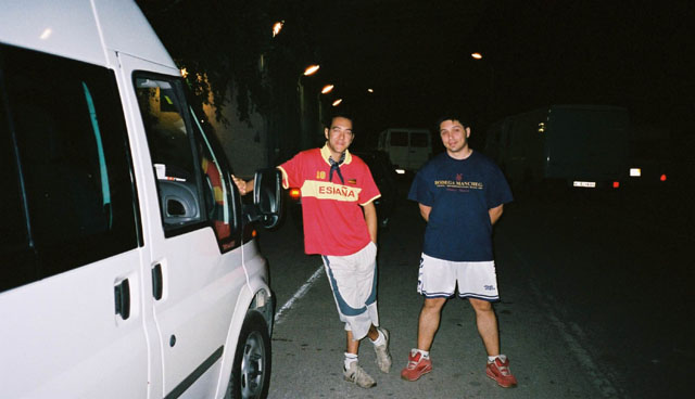 Don Billy y Don Imperial, desesperados porque veían peligrar el objetivo del viaje. Tuvimos problemas en la frontera de Bulgaria, pero al final... pa'lante... seguimos.