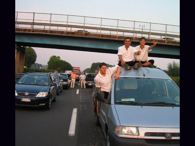 Y otra desgracia más en la carretera un gran atasco, que nos hizo llegar de noche a Pisa