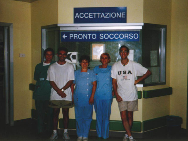 Je je, una fotico con las enfermeras mientras atendían a Alex de las múltiples picaduras de mosquitos que sufrimos en la plaza de la catedral
