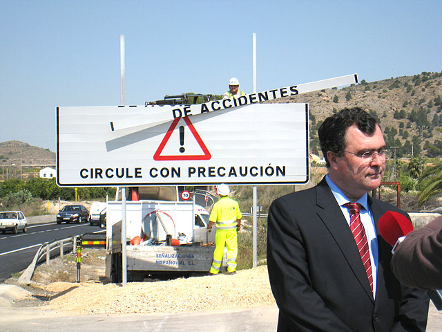 El consejero de Obras Públicas y Ordenación del Territorio, José Ballesta, visitó hoy el fin de las obras por las que la Comunidad Autónoma, a través de la Dirección General de Carreteras, ha eliminado el primer punto negro señalizado de la red de carreteras de España, ubicado en la intersección de Abanilla de la RM-414, lo que convierte a la Región en la primera autonomía española en llevar a cabo esta iniciativa.