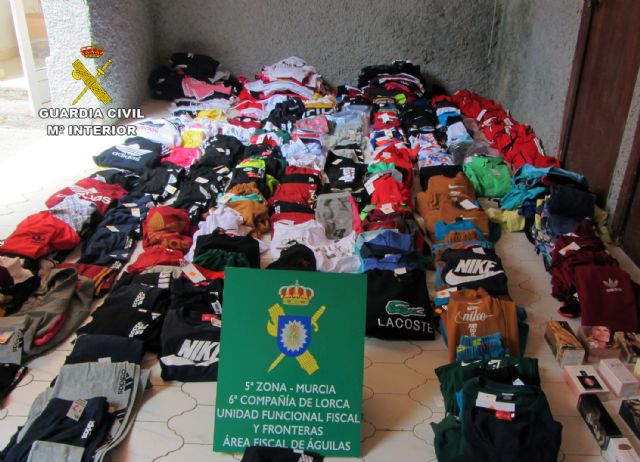 La Guardia Civil de la Región de Murcia ha desarrollado una actuación en Águilas, que ha culminado con la incautación de cerca de 350 prendas de vestir y 20 perfumes supuestamente falsificados y con la investigación de la gerente de un establecimiento comercial como presunta autora de delito contra la propiedad industrial.
