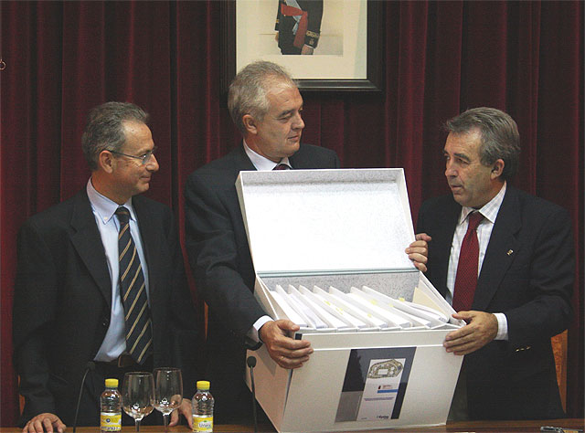 Foto: El consejero de Agricultura y Agua, Antonio Cerdá, entregó hoy al alcalde de Abarán, Antonio Eugenio Gómez (centro), el proyecto de ampliación de la depuradora. Al acto asistió también el director general del Agua, Miguel Ángel Ródenas (izquierda).