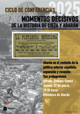 Siguiendo con el nuevo ciclo de conferencias, que está ofreciendo el Centro de Estudios Históricos Fray Pasqual Salmerón en las Bibliotecas Padre Salmerón de Cieza y don José Vargas de Abarán, le toca el turno a la titulada: "Abarán en el contexto de la política exterior española: expansión y recesión. Sus protagonistas". Donde Alfredo Jiménez Gómez explicará los acontecimientos capaces de convertir a este pueblo aislado en una potencia exportadora de frutas, hortalizas y conservas vegetales, que dio lugar a la acuñación de la conocida frase "Abarán, París, Londres".