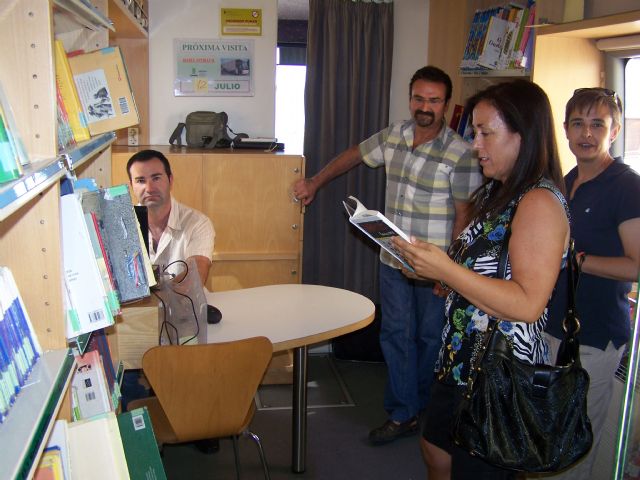 La edil de Cultura y Turismo del ayuntamiento de Águilas, Clara Valverde, ha visitado hoy el bibliobús de la campaña "Un verano de libro", que todos los lunes, durante los meses de julio y agosto, se instalará en la playa de Calabardina, en horario de 10'00 a 13'00 horas.