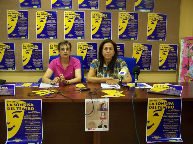La edil de Cultura y Festejos, Clara Valverde, acompañada de la técnico municipal, Lola Montalbán, ha presentado esta mañana, en rueda de prensa, el XIV Ciclo de Teatro de Humor "La Sonrisa del Teatro", que se desarrollará en Águilas, entre los meses de julio y agosto.