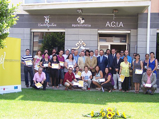 El consejero de Universidades, Empresa e Investigación, Salvador Marín, entregó hoy, junto al alcalde de Águilas, Juan Ramírez, el distintivo 'Sol Región de Murcia' a 36 establecimientos de la localidad que les acredita su calidad y excelencia, en el marco del Plan de Impulso del Comercio Minorista. De estos comercios, 33 obtienen un 'Sol' y otros tres, Ortiz Floristas, Centro de Naturaleza El Portajo y Muebles Montalbán, han sido distinguidos de dos 'soles'.