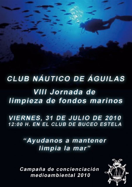 El 30 de Julio, en colaboración con el Club de Buceo Estela y voluntarios que han acudido a la llamada del Club Náutico de Aguilas, han participado en la VII Edición de la Campaña de Limpieza de Fondos Marinos.