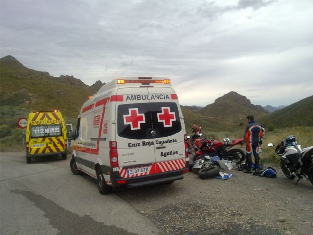 Según el llamante que alertó al Centro de Emergencias de la Región de Murcia, en el suceso resultaron heridos dos motoristas, encontrándose uno de ellos inconsciente, por lo que hasta el lugar del incidente se desplazó, junto al recurso de Cruz Roja, el Equipo Médico del Servicio de Urgencias de Atención Primaria de guardia en el Centro de Salud Águilas Norte y varias Patrullas de la Guardia Civil de Tráfico para asegurar la zona y permitir el trabajo de los equipos sanitarios.