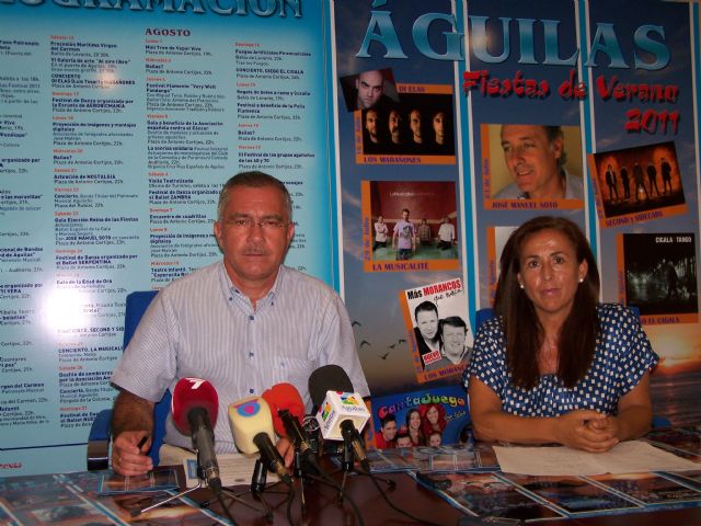 El alcalde de Águilas, Bartolomé Hernández Giménez y la edil de Turismo y Festejos, Clara Valverde, han llevado a cabo hoy una rueda de prensa en la que han ofrecido toda la información referente al Programa de Fiestas del Verano 2011.