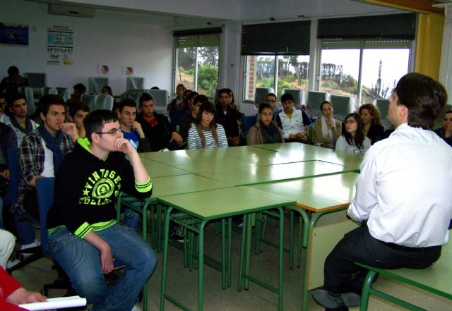 El Instituto de Educación Secundaria "Alfonso Escámez" de Águilas, acogió esta mañana una interesante charla a cargo de Ignacio Martínez, máximo responsable de la firma Climasol y elegido Joven Empresario del Año en la Región de Murcia.