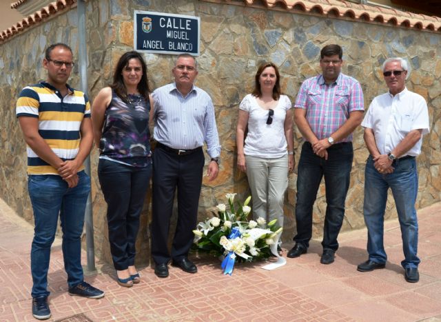 El Consistorio aguileño se ha sumado hoy a la propuesta de la Fundación Miguel Ángel Blanco, rindiendo un sencillo y emotivo homenaje en la calle del municipio que lleva el nombre del exconcejal del PP en Ermua (Vizcaya), secuestrado y asesinado por ETA.