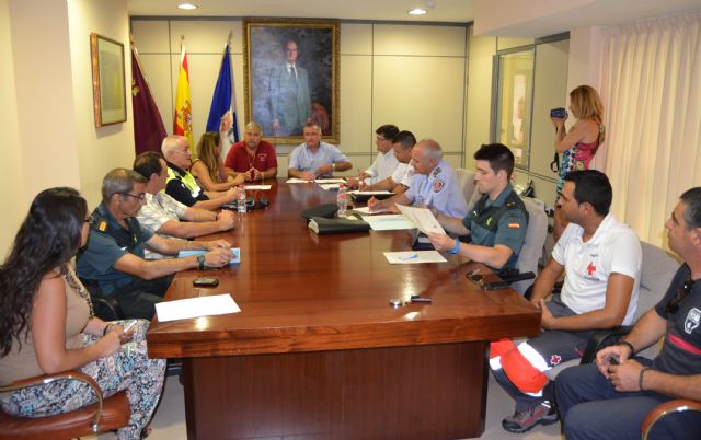 El alcalde de Águilas, Bartolomé Hernández Giménez, presidió esta mañana una reunión de la Junta Local de Seguridad, que se desarrolló en el Consistorio aguileño, con la finalidad de ultimar los preparativos de la V Muestra del Carnaval de Verano que se celebrará el sábado 10 de agosto.