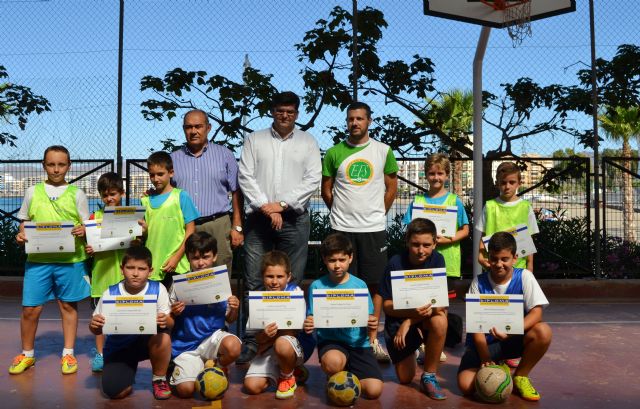 El concejal de Educación del Ayuntamiento de Águilas, Francisco Clemente, clausuró esta mañana la Escuela de Verano de Fútbol Sala, que por cuarto año consecutivo se ha desarrollado en las instalaciones deportivas del Instituto de Educación Secundaria "Alfonso Escámez", organizada por el club deportivo "Erreferre".