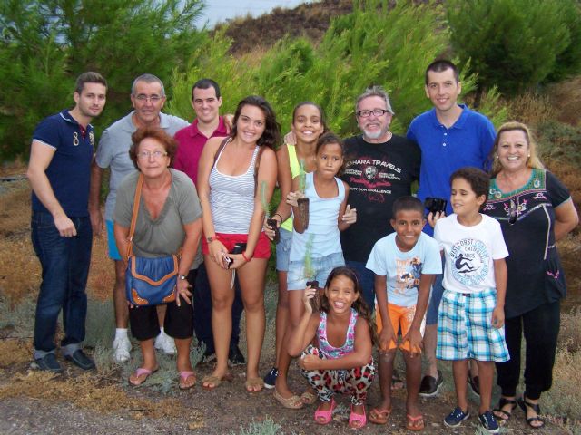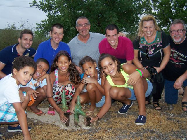 Los jóvenes de Nuevas Generaciones del Partido Popular de Águilas y los niños saharauis del programa "Vacaciones en Paz" han realizado esta tarde una plantación de pinos en el área próxima al Ecoparque, situado junto al Polígono Industrial.