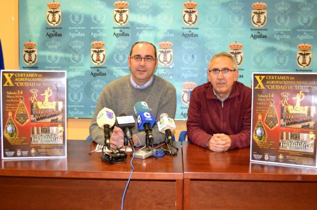 La Sala de Prensa del Consistorio aguileño acogía, esta misma tarde, el acto de presentación del X Certamen Nacional de Agrupaciones Musicales 'Ciudad de Águilas'. Este se llevará a cabo el próximo sábado, 14 de marzo, a las 20 horas, en el Auditorio y Palacio de Congresos Infanta Doña Elena.