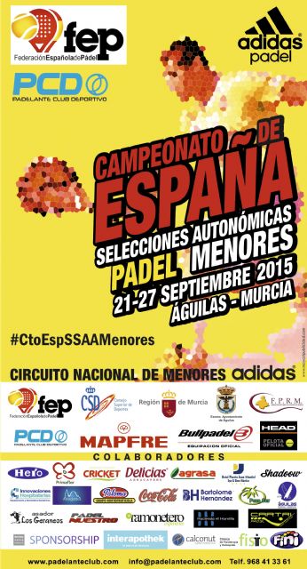 Águilas acogerá el próximo fin de semana el Campeonato de España de Selecciones Autonómicas de Pádel de Menores; el evento deportivo, que comenzará el viernes, se desarrollará en las instalaciones de Padelante Club Deportivo.
