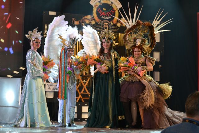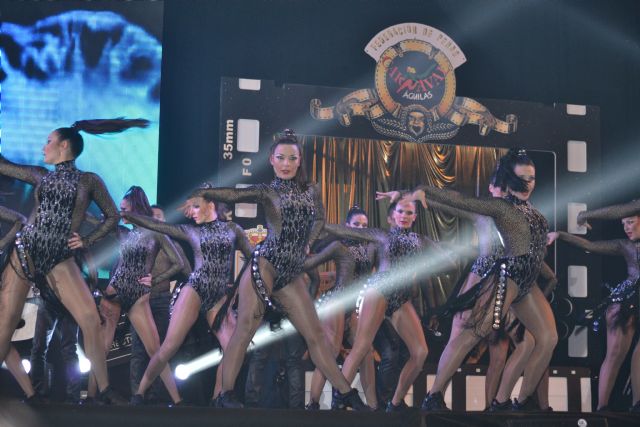 Águilas dio anoche el pistoletazo de salida al Carnaval 2016 en el transcurso de una impresionante Gala de Cambio de Poderes, conducida por Iris Peña y Ginés Parra, que reunió en el pabellón Diego Calvo a más de 2.000 asistentes. Con una puesta en escena cargada de guiños al mundo de Hollywood dio comienzo, pasadas las nueve de la noche, un espectáculo de la talla de unas fiestas declaradas de Interés Turístico Internacional. El Ballet Oficial de la Federación de Peñas, dirigido este año por Antonio Molina, fue el encargado de calentar motores de la noche más protocolaria del Carnaval y lo hizo con una soberbia actuación que desato los aplausos de todos los asistentes. Seguidamente ocuparon el escenario del Diego Calvo el presidente de la Federación de Peñas, José Alonso, quien en su discurso adelantó que "el próximo reto de nuestra gran fiesta es lograr la creación de una Ciudad del Carnaval" y la alcaldesa de Águilas, Mari Carmen Moreno. La primera edil aguileña comenzó su intervención destacando la magnífica labor de los personajes salientes. "Gracias por haber estado siempre dispuestos para representar a Águilas y sus Carnavales allá donde se os ha requerido con el consiguiente esfuerzo que eso os ha conllevado y enhorabuena, os podéis sentir muy orgullosos de como habéis representado a los personajes de nuestra gran fiesta", apuntó Moreno. La alcaldesa recordó también a todas las peñas de Carnaval de las que dijo "sois las auténticas protagonistas". La máxima mandataria aguileña aseguró ser consciente del trabajo y sacrificio que todas ellas hacen. "Conozco el esfuerzo y las dificultades por las que pasáis y soy consciente de que estamos en deuda con vosotros, que dedicáis vuestro tiempo y vuestros recursos económicos a hacer cada año más grande nuestro Carnaval".