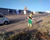 17/04/2018 El Ayuntamiento desbroza las aceras de la Urbanización los Jardines y el polígono del Labradorcico