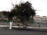 17/04/2018 El Ayuntamiento aplica un tratamiento intensivo para 'mejorar la salud' de un algarrobo en la Urbanización los Jardines